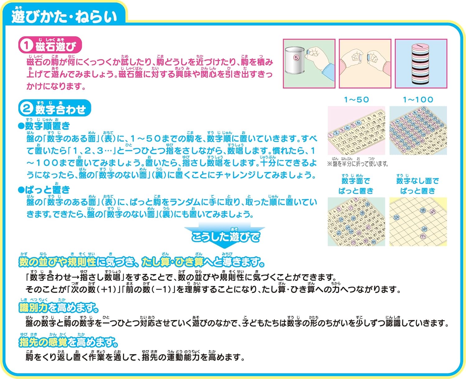 この磁石すうじ盤は、1から100までの数字を順番に並べることで、数の構造や規則性を視覚的に理解できます。