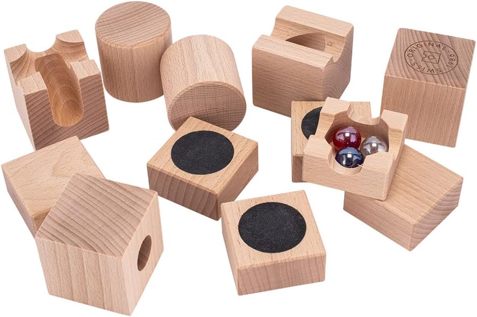 ・セット内容:積み木×12(パーツ8種類)、ビー玉×3