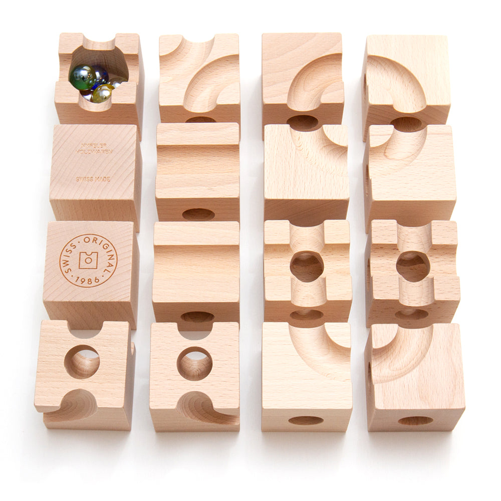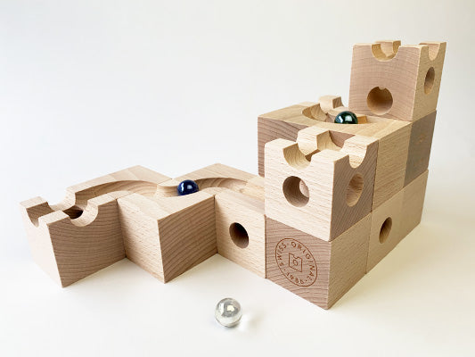 キュボロは、「秩序の敏感期」にある子どもに最適なおもちゃです。この時期の子どもは、物の配置や順序、繰り返しなどに強いこだわりを示し、世界を理解するために「秩序」を求めます。キュボロは、積み木の形状や構造に沿ってコースを正しく組み立てることで、道筋の論理性や因果関係を体感的に学べる構造になっています。ビー玉が思い通りに転がるという結果が、「正しい順序」に対する安心感と満足感をもたらし、秩序感覚を育む経験となります。遊びの中で繰り返される試行錯誤は、子どもの中に自然とルールや構造への理解を深めていきます。
