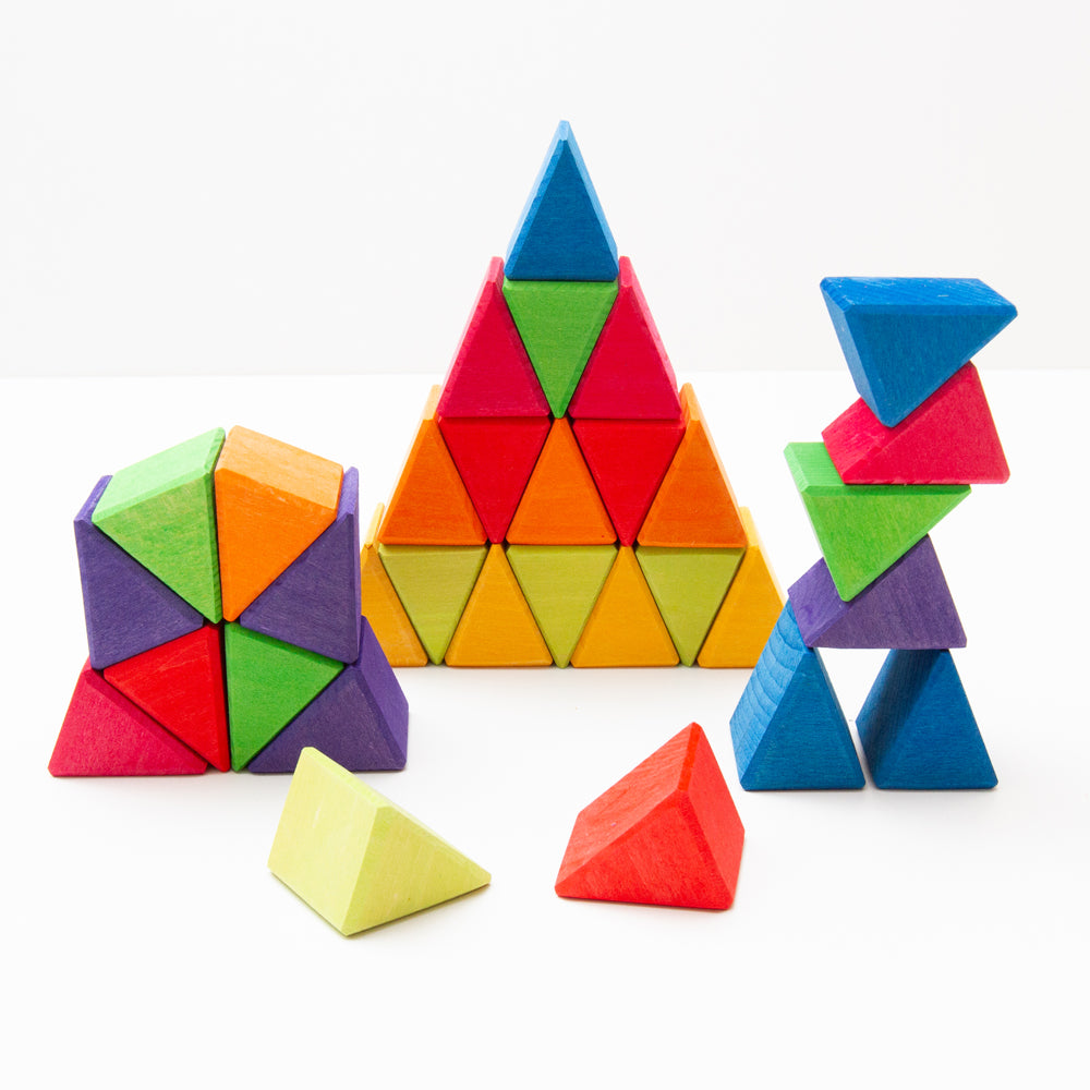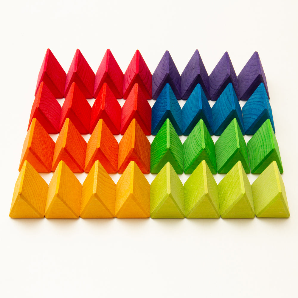 ・8色×各4個=32ピースの三角パーツがセットに。組み合わせの妙が美しさと創造力を刺激します。