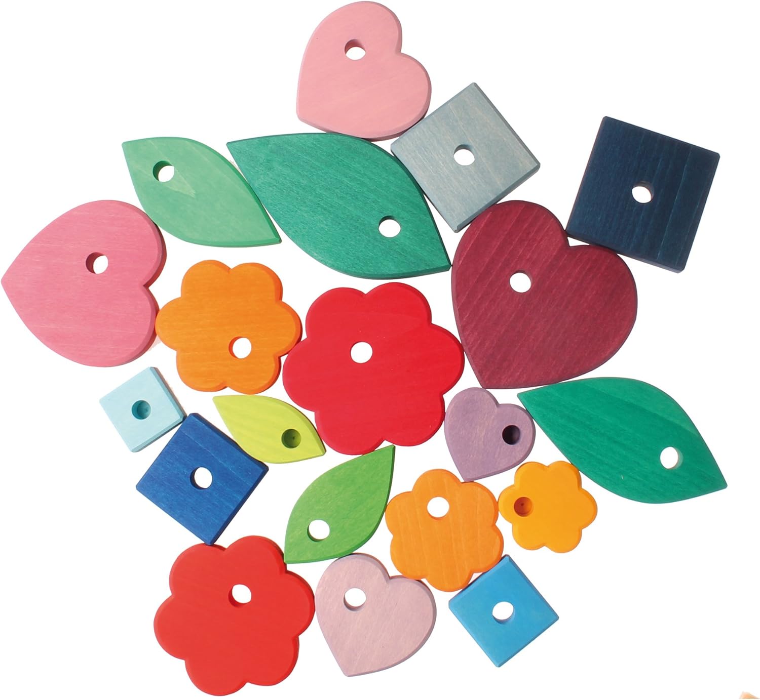 ・葉・花・ハート・正方形など、個性豊かな形状の積み木たち。