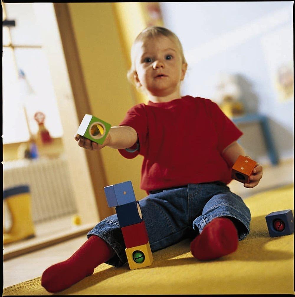 1歳頃から遊べる大きさで、安全に積む・崩すを楽しめる。