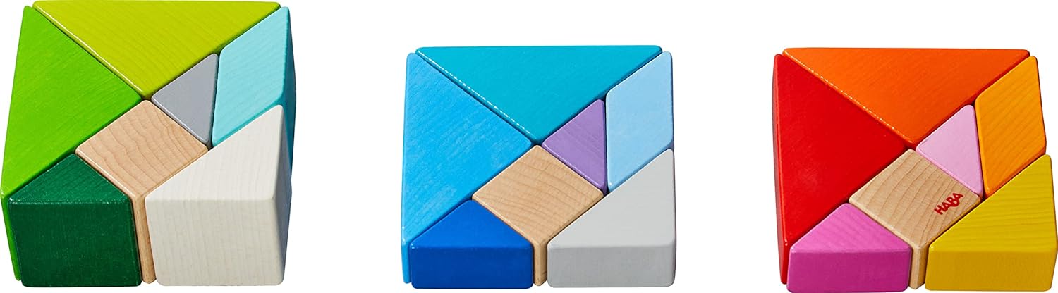 タングラムの組み合わせと立方体づくりという2つの遊び方で、形の世界を存分に体験できるパズルです。