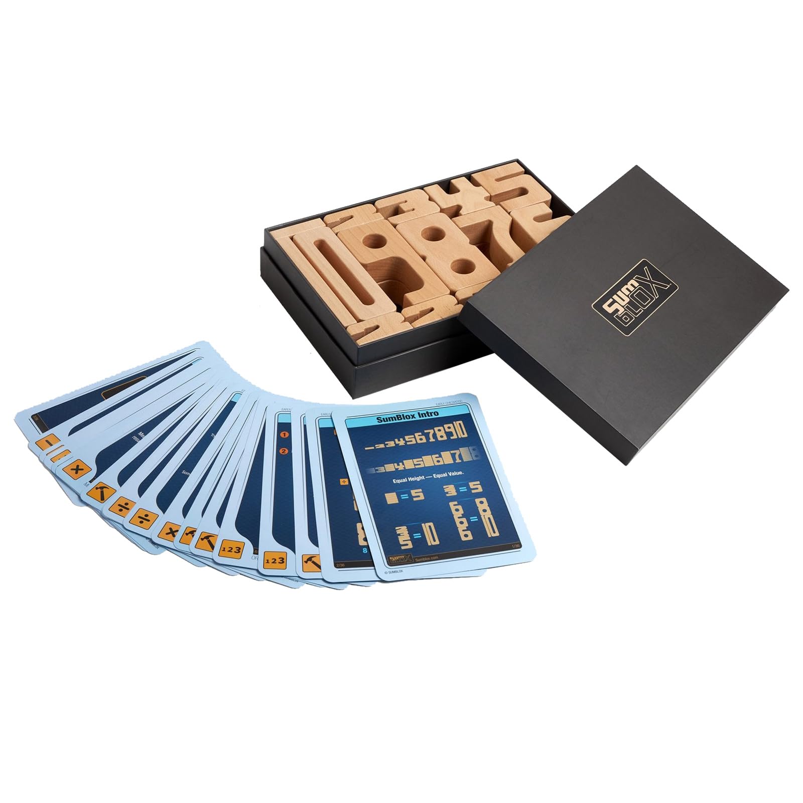 1~10の数字ブロック38個に加え、計算カード80枚入りで多様な学習遊びに対応。