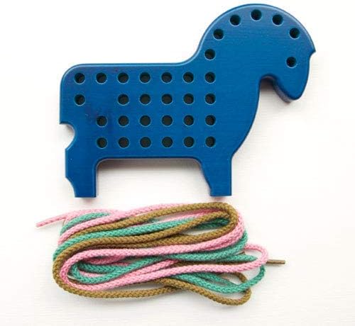 ・ 木製のポニーに異なる色のひもを通しながら、手と目の協応を育成