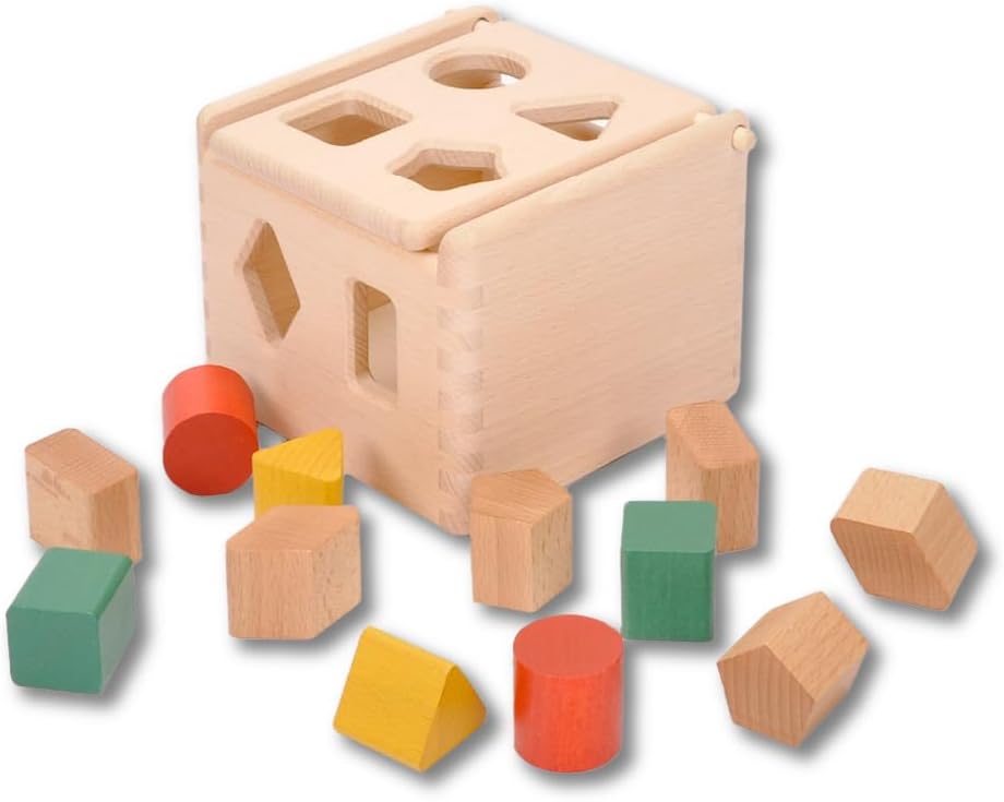 形を合わせてブロックを落とすシンプルな遊びながら、手先の巧緻性や集中力を育てる知育効果があります。